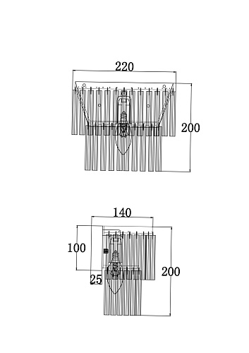 Металлическая арматура в двух оттенках: хром и латунь. Декоративные эле менты – прозрачные стеклянные трубки в форме звезд. Многоярусный декор обеспечивает игру света.