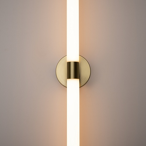 Материал арматуры – алюминий, цвет – золото. Настенные модели в трех оттенках арматуры: золото, черный, белый. Плафоны-трубки из матового акрила равно мерно распределяют свет. Трендовая асимметрия в дизайне люстр. LED-источники света с цветовой температура 3000К.