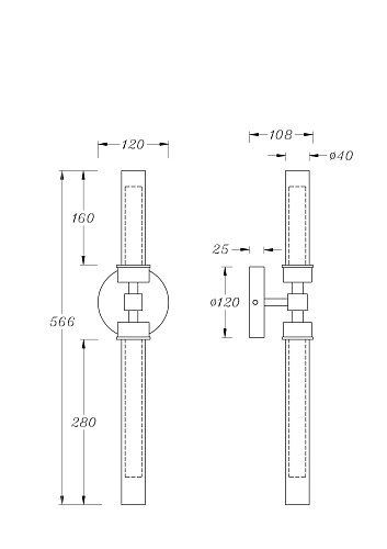 Характеристики Настенный светильник (бра) Maytoni Stelo MOD116WL-L7B3K