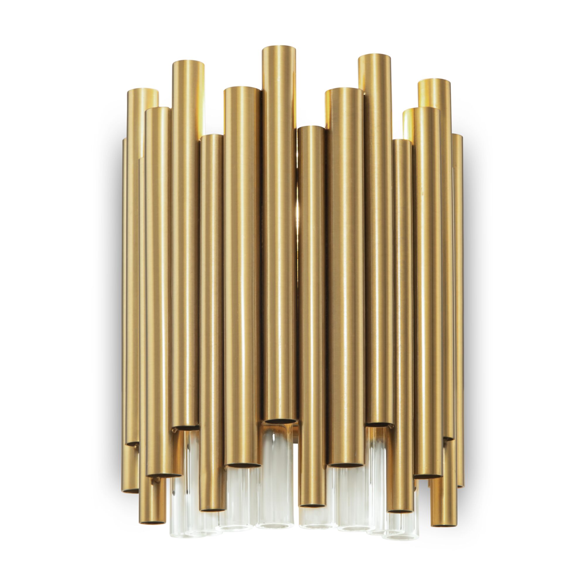 Материал арматуры – металл, цвет – латунь. Декор в виде трубок из нержавеющей стали в бронзовом цвете. Последний ряд декора – стеклянные трубки – обеспечивает невесомый силуэт.