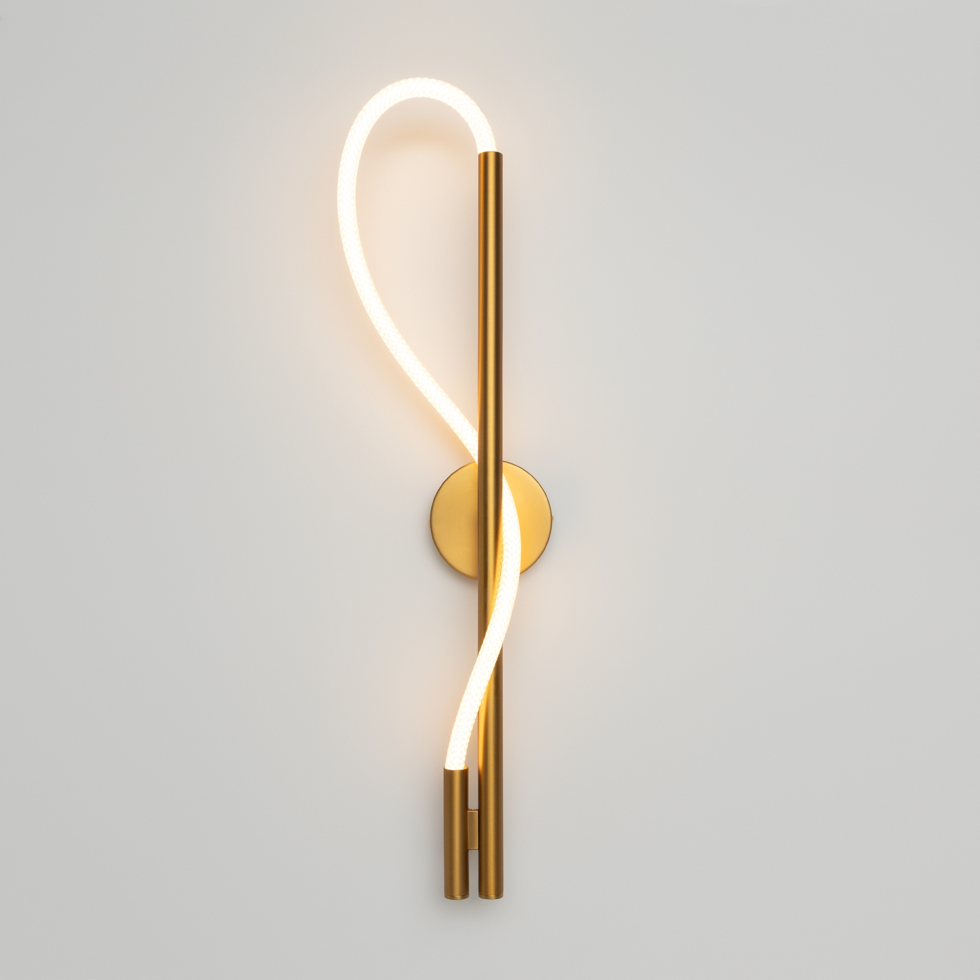 Алюминиевый корпус. Оттенки – золотой, матовый черный. Рассеиватель двух видов – силиконовая трубка и сверхкрепкий жгут (не желтеет со временем, обладает высокой прочностью). Мягкое равномерное свечение благодаря высокой плотности светодиодов. Цветовая температура 3000К. LED-источник света.