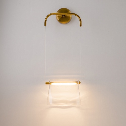 Цвет металлической арматуры — латунь с сатинированным финишем, плафоны — прозрачное стекло. Источник света: LED. Цветовая температура светильников 3000К, угол рассеивания — 120 градусов. Настенные бра и подвесные светильники оснащены регулируемым проводом длиной до 3 метров, что позволяет использовать их в помещениях с высокими потолками.