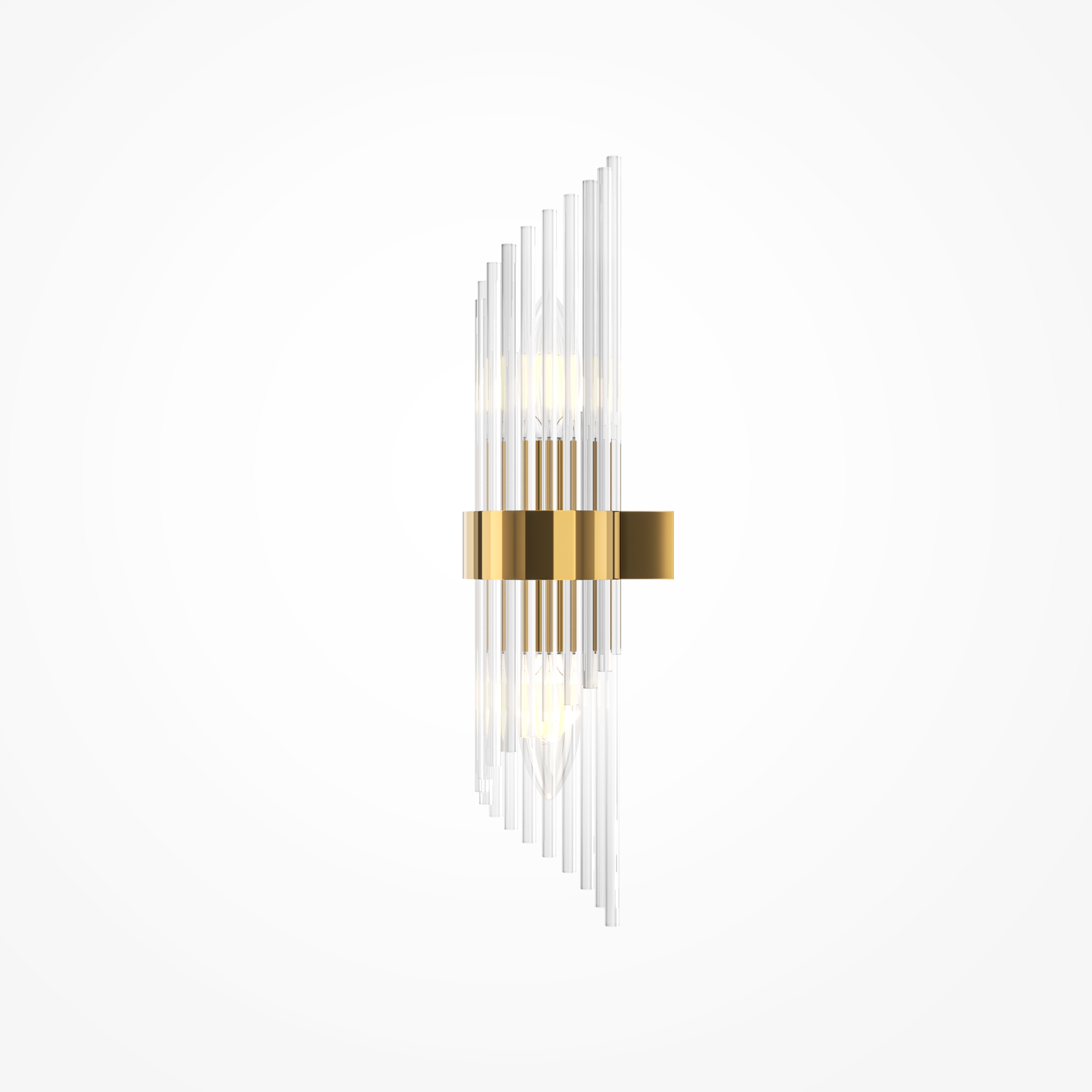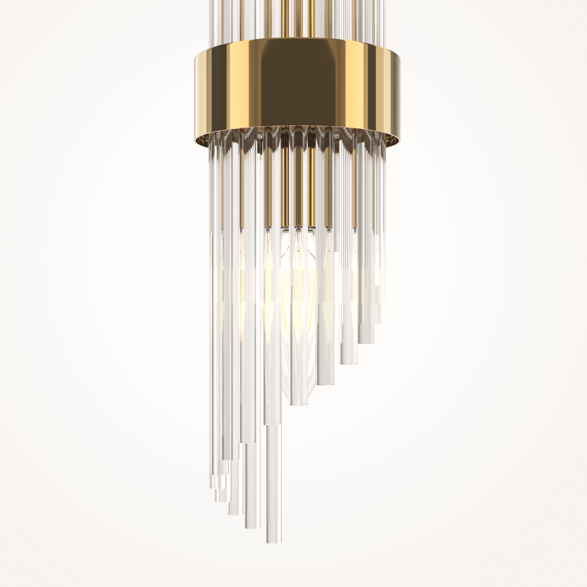 Материал арматуры - металл, цвет - золото. Декоративный элемент из прозрачного стекла в форме рельефных трубок. Цоколь Е14. Лампы в комплект не входят.