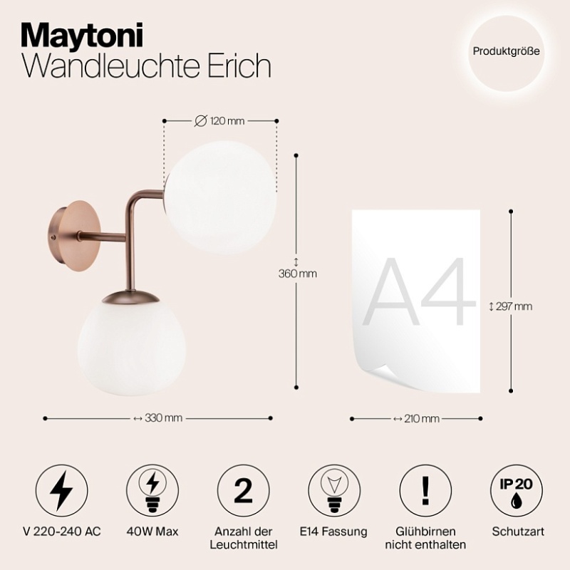 Характеристики Настенный светильник (бра) Maytoni Erich MOD221-WL-02-G