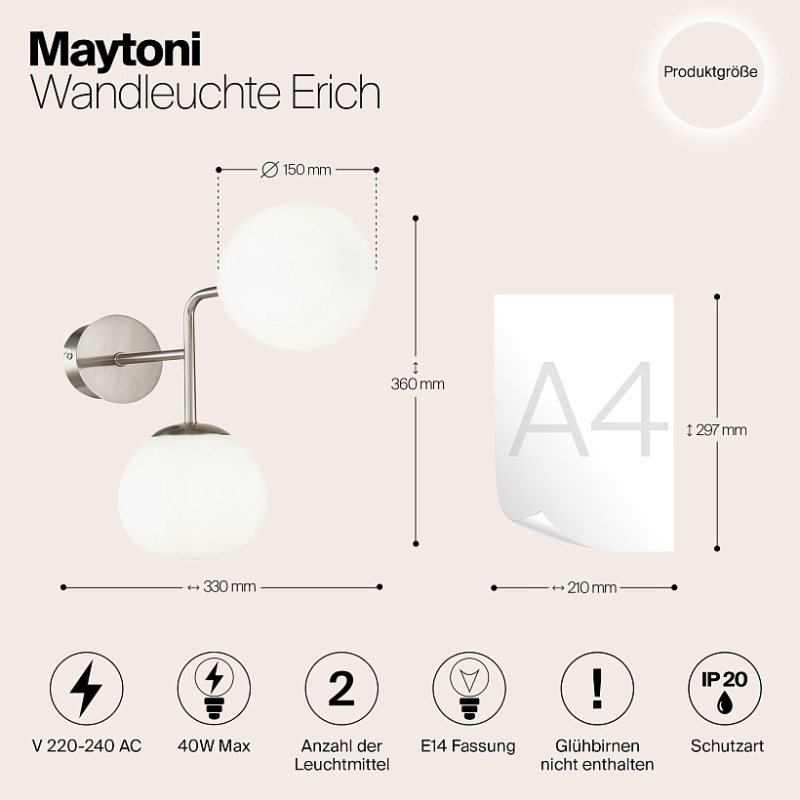 Характеристики Настенный светильник (бра) Maytoni Erich MOD221-WL-02-N