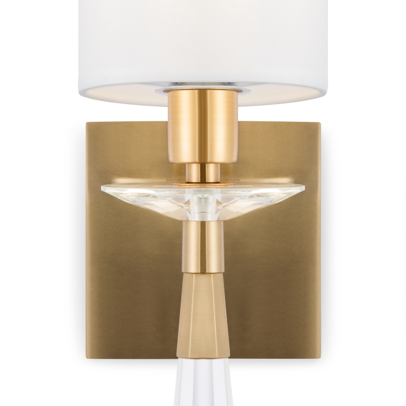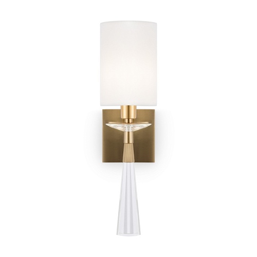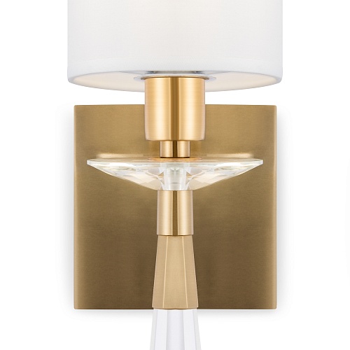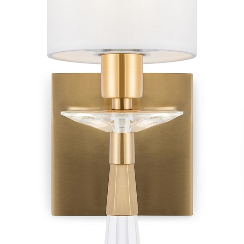 Металлическая арматура, цвет – латунь. Абажур – белый хлопок. Изюминка дизайна – элементы из натурального камня (алебастра). Трендовый микс фактур. Лаконичные формы в американском стиле. Источник света - лампа с цоколем Е14.