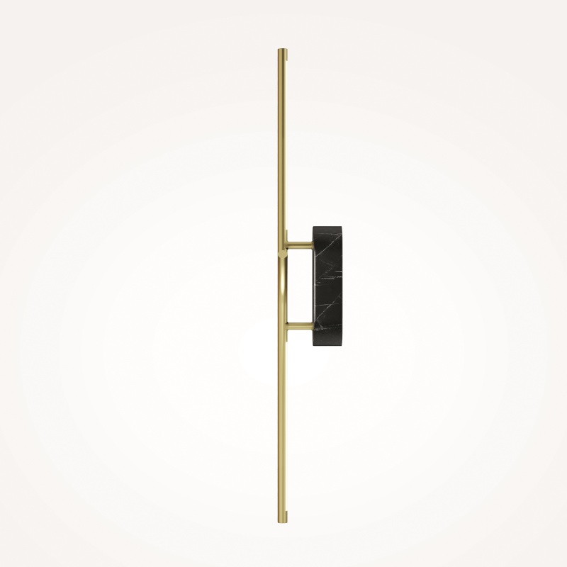 Два варианта основания корпуса. Металлический, цвета – черный и сатинированная латунь. Мрамор, цвета - черный и серый. Плафон-трубка из металла со скрытым рассеивателем. Серия отражает эстетические чувства эпохи Возрождения, искусно сочетая цветовые палитры, формы и материалы, характерные для того периода. LED источник света. Цветовая температура - 3000К.