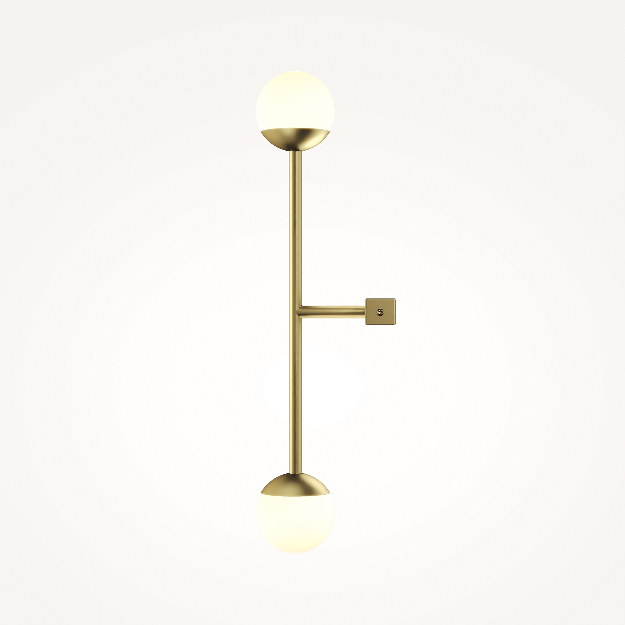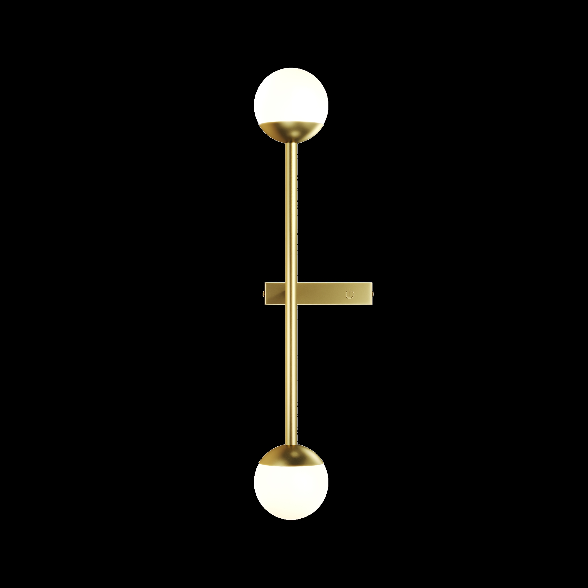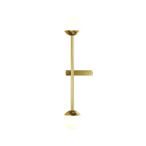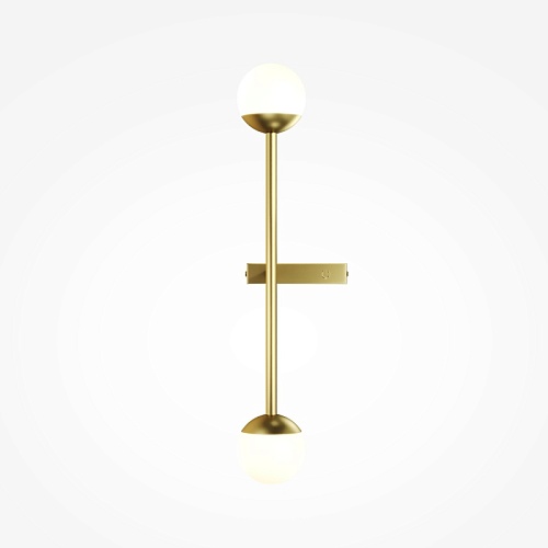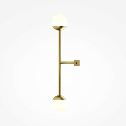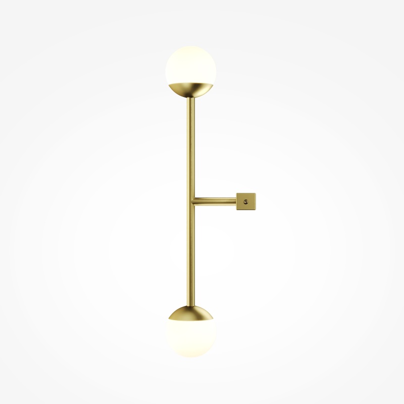 Материал арматуры — металл, цвета - латунь, черный. Плафоны-сферы из белого матового стекла. LED источник света, цветовая температура 3000К. Встроенный выключатель регулирует яркость света прикосновением с шагом 25%, 50%, 75% и 100%.