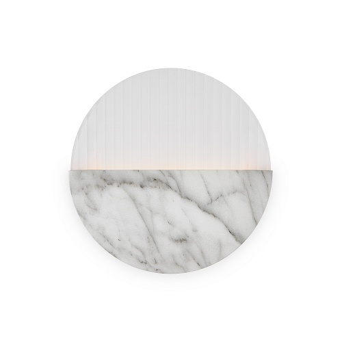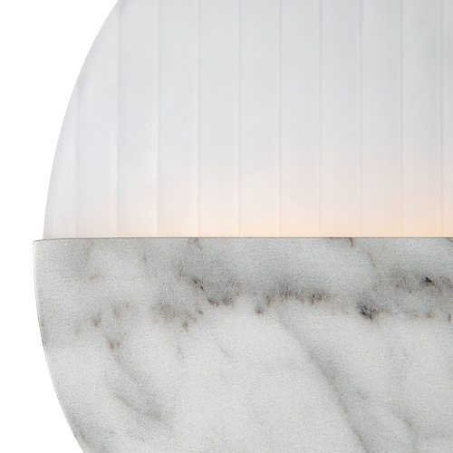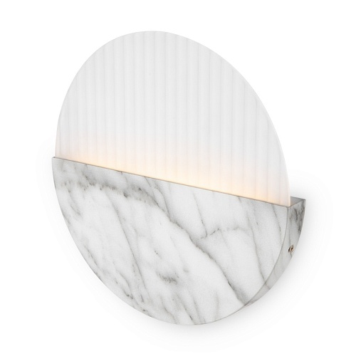 Матовая металлическая арматура, оттенки – латунь, мрамор. Рассеиватель двух видов: рифленое стекло и белый матовый акрил. Источник света - светодиодная лента, температура 3000К.
