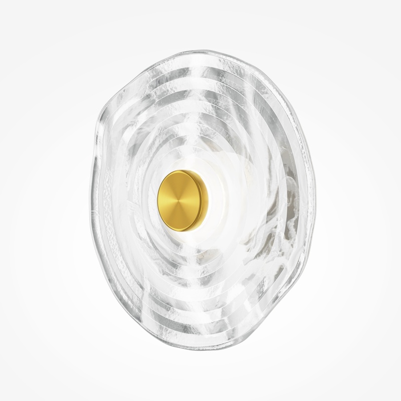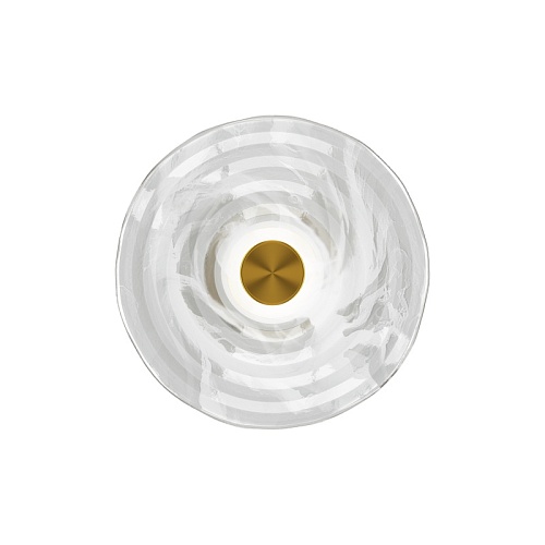 Металлическая арматура, цвет - латунь. Декоративные плафоны из литого стекла. Они рассеивают свет и дают легкие блики на стенах. Стекло плафонов может быть прозрачным или тонированным с паттерном молочного оттенка. Встроенный LED-источник света имеет цветовую температуру 3000 К, угол рассеивания — 120 градусов.