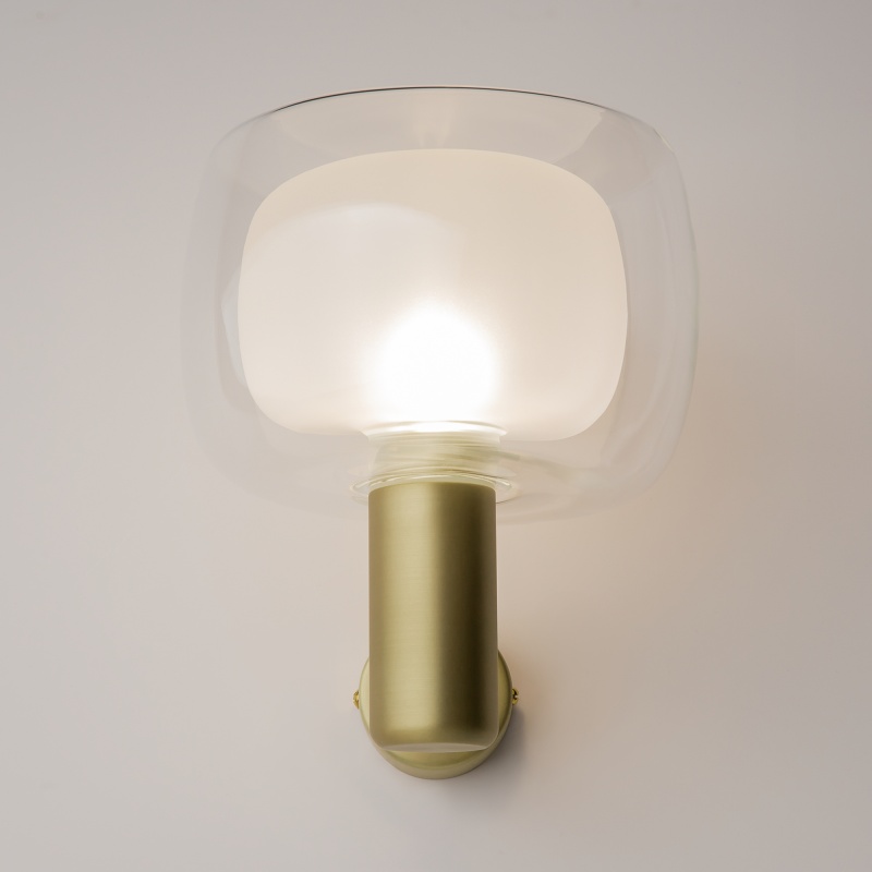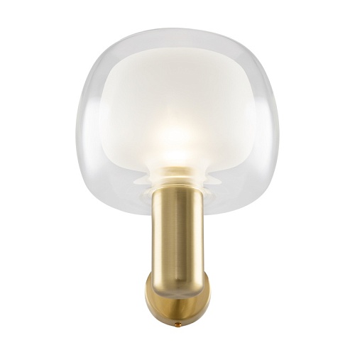 Арматура – алюминий, цвет – золото. Двойной стеклянный плафон: внутренний – матовый, внешний – прозрачный. Стиль – итальянская неоклассика. Культовые формы 60-х в дизайне.