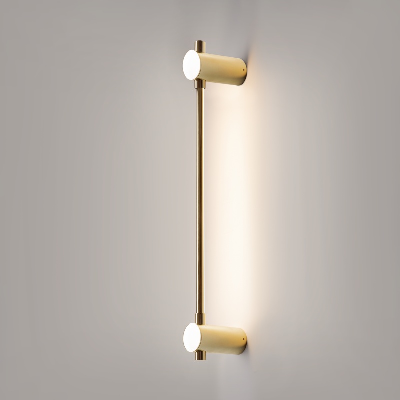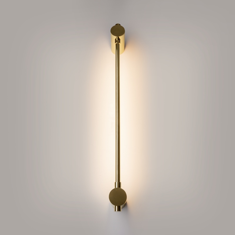 Материал арматуры – алюминий, оттенки – черный, золото. Скрытое крепление. Сбалансированный светотеневой рисунок. Поворотный механизм для регулировки светового потока. Минималистичный дизайн. Возможность создания световых композиций. LED-источник с цветовой температурой 3000К.