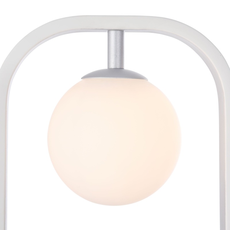 Металлическая арматура в комбинации двух оттенков: белый и серебро, белый и золото. Плафоны-сферы из выдувного стекла, цвет – белый. Регулируемая высота.
