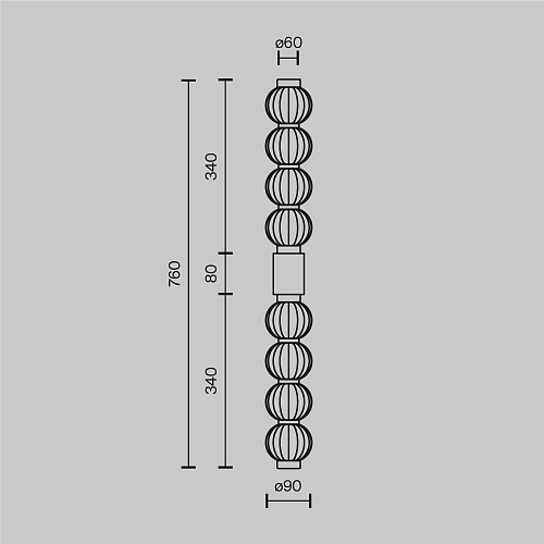 Арматура из металла, цвет – хром. Акцентный декор в виде рельефных сфер из литого стекла. Источник света – светодиодная лента – скрыта под акриловым рассеивателем. Регулируемая высота подвесных светильников.