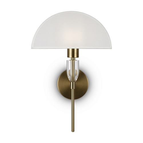 Арматура – металл, цвета – хром, латунь. Хлопковый абажур в белом цвете. Прозрачный акриловый декор в основании. Эстетика Баухауса, трендовая форма абажура. Источник света - лампа с цоколем Е27.