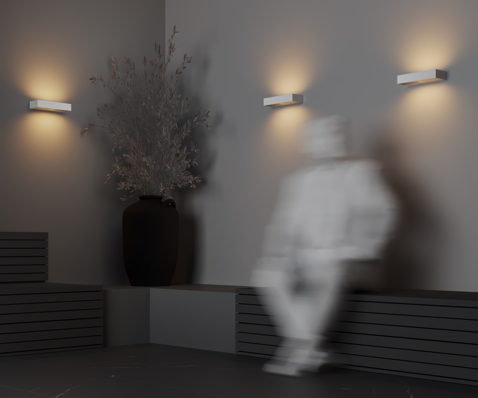 Материалы корпуса — алюминий и стекло. Оттенки — белый, графит. Устойчив к коррозии. LED-источник света, цветовая температура — 3000К. Индекс цветопередачи — 80Ra. Высокая степень защиты от пыли и влаги — IP 65.