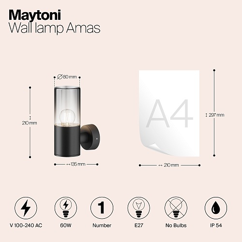 Характеристики Настенный светильник (бра) Outdoor Amas O432WL-01GF