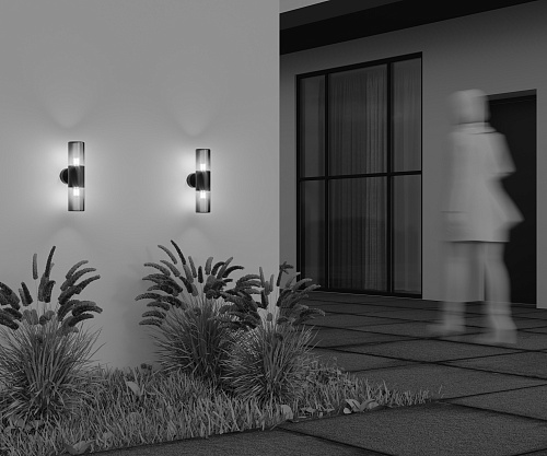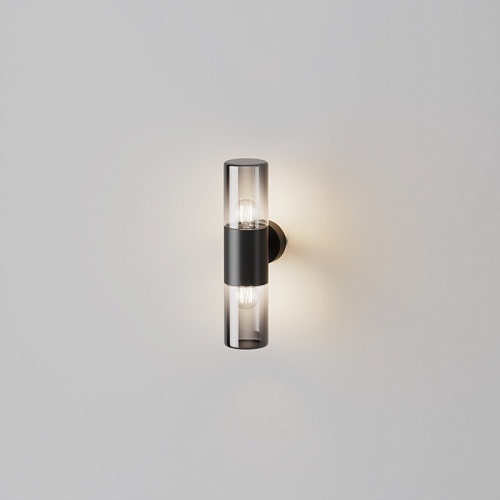 Алюминиевый корпус, цвет - графит. Световой элемент - тонированное стекло. Источник света - лампа с цоколем Е27. Универсальная серия для современных и классических экстерьеров. Защита IP54.