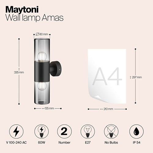 Характеристики Настенный светильник (бра) Outdoor Amas O432WL-02GF