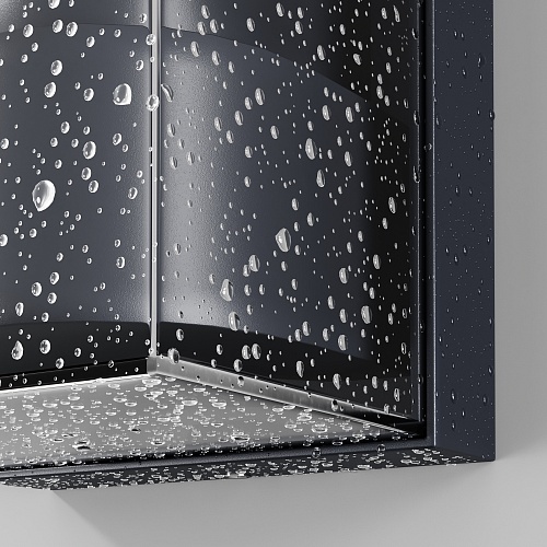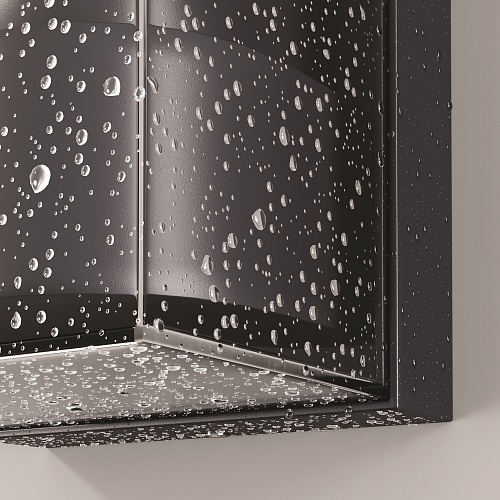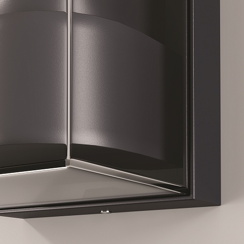 Алюминиевый корпус, цвет - графит. Рассеиватель из прочного тонированного пластика в 2-х формах: квадратный и округлый. Идеален для экстерьеров в стиле лофт и освещения входных зон. Источник света - лампа с цоколем Е27. Степень защиты - IP65.