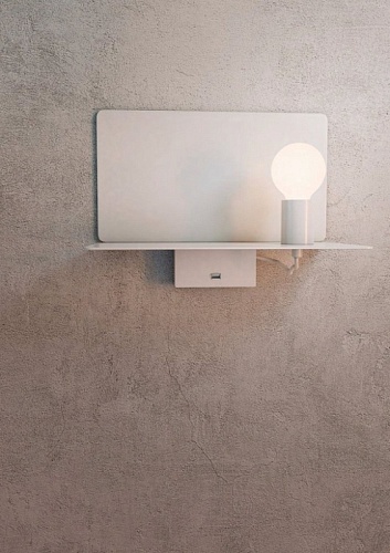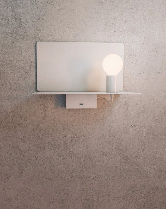 Функционал светильников серии Rack не имеет границ. Лаконичный рациональный дизайн моделей совмещает в себе красоту и комфорт. В конструкцию входит светильник, книжная полка и USB зарядное устройство. Корпус изготовлен из металла с устойчивой к износу порошковой краской черного или белого цвета. Для зрительного комфорта рекомендуется использовать лампы с матовой колбой.