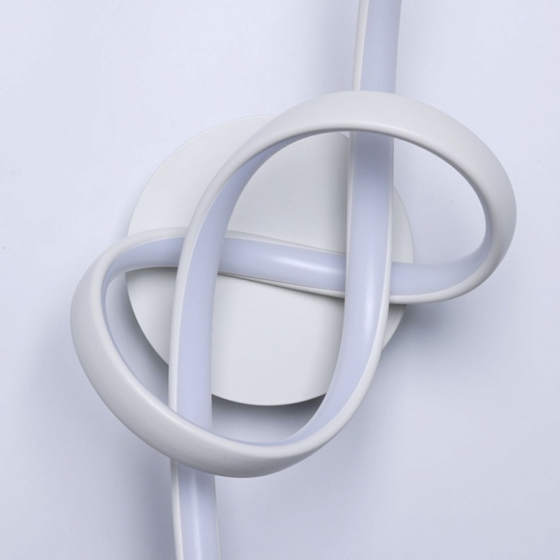 Металлическое основание настенного бра окрашено в белый цвет. Светодиодные источники света закрыты белым силиконом.
