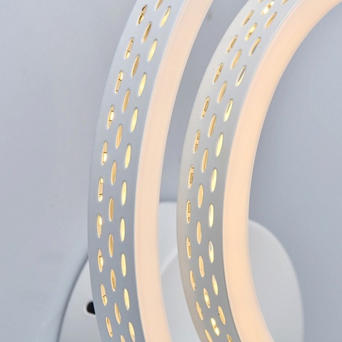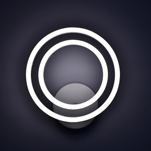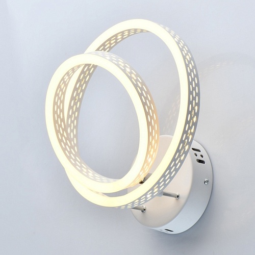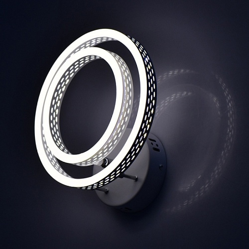 Основание светильника выполнено из металла и окрашено в белый цвет. Геометрический рисунок плафона выполнен по технологии лазерной резки. Светодиодные источники света типа SMD Strip закрыты белым матовым акрилом.