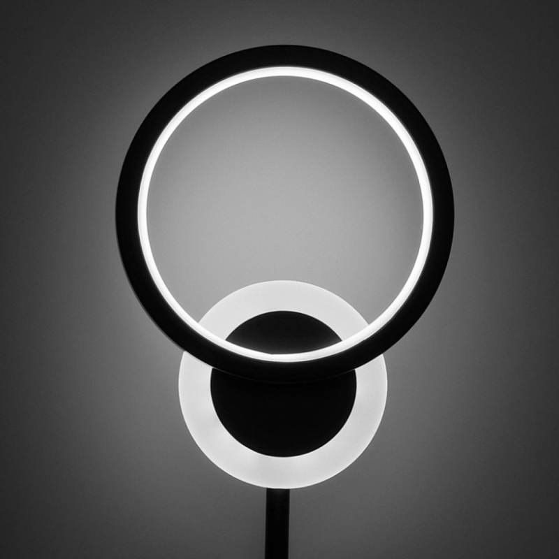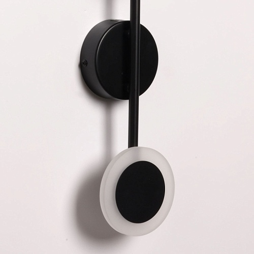 Металлическое основание настенного бра окрашено в черный цвет. Корпус плафона выполнен из сплава алюминия с цинком и окрашен в цвет основания. Светодиодные источники света закрыты матовым акрилом.