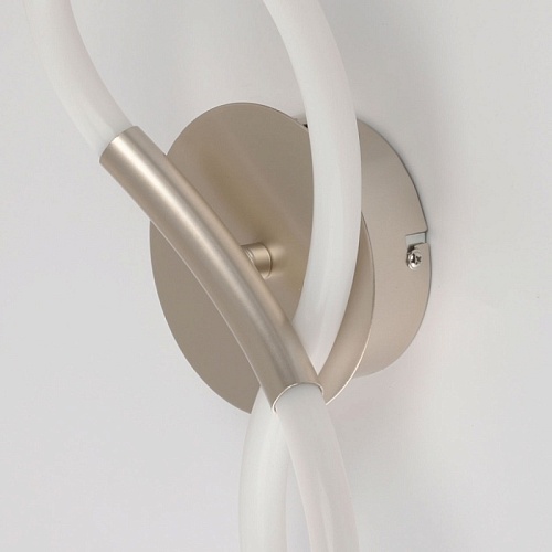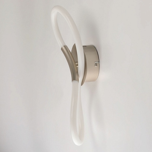 Металлическое основание бра окрашено в цвет никеля. Гибкий плафон настенного бра выполнен из белого матового силикона.