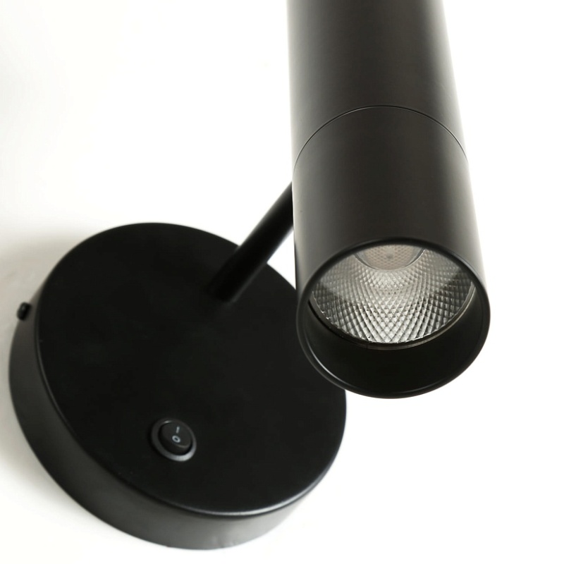 Сочетание черного окрашенного и золотой гальваники в покрытии каркаса, поворотный плафон.