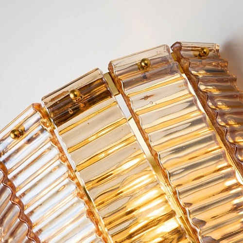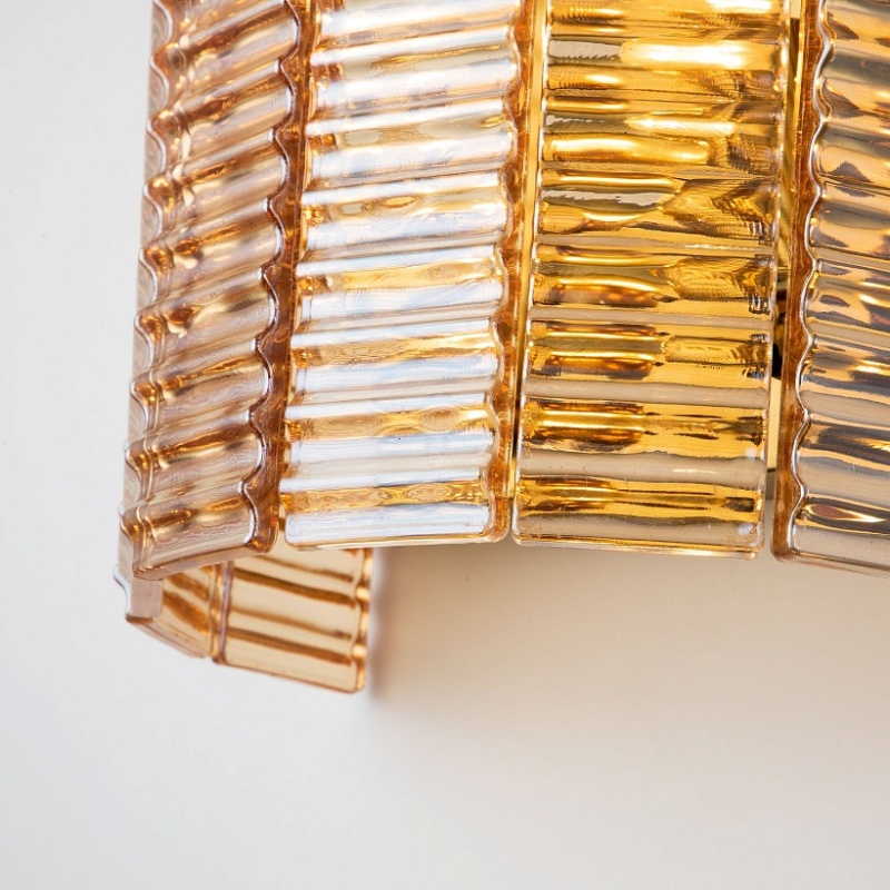 каркас золотого цвета, подвески из рифленого стекла янтарного цвета, изготовленного по Муранской технологии
