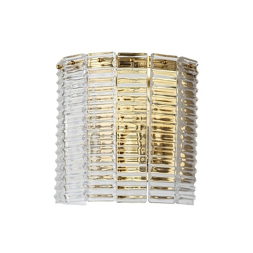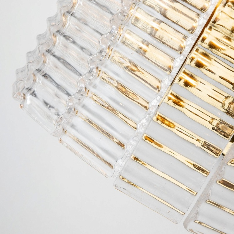 каркас золотого цвета, подвески из рифленого прозрачного стекла, изготовленного по Муранской технологии