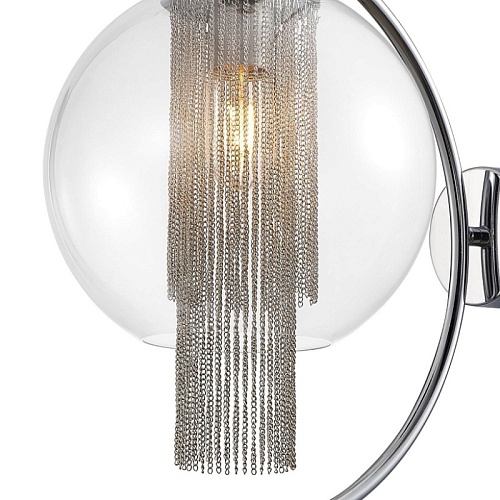 каркас цвета хром, плафон из прозрачного выдувного стекла, декор в виде каскада серебряных цепочек
