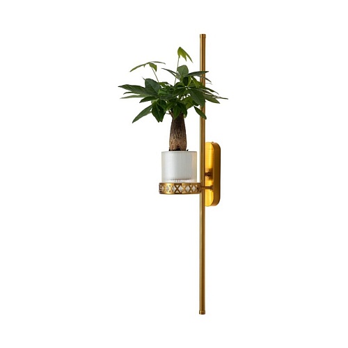 светильник с подставкой для кашпо, каркас цвета золотой латуни, рассеиватель из белого акрила, кашпо входит в комплект