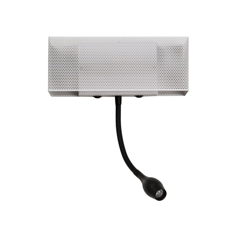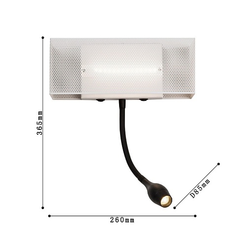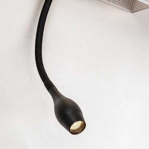 каркас белого цвета, лента-LED, прямоугольный металлический плафон с перфорацией, поворотный спот LED черного цвета, два выключателя