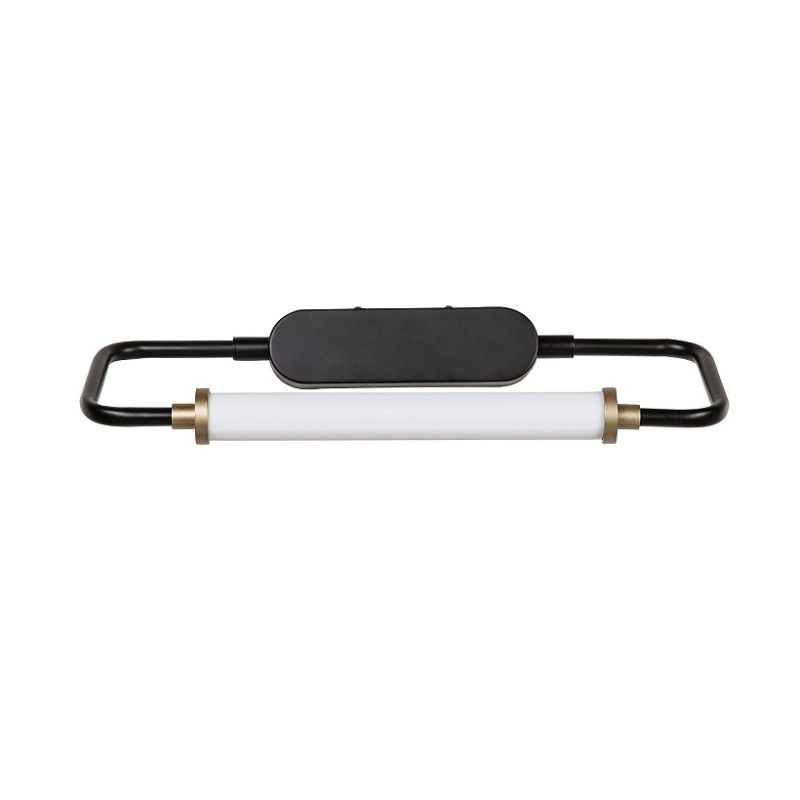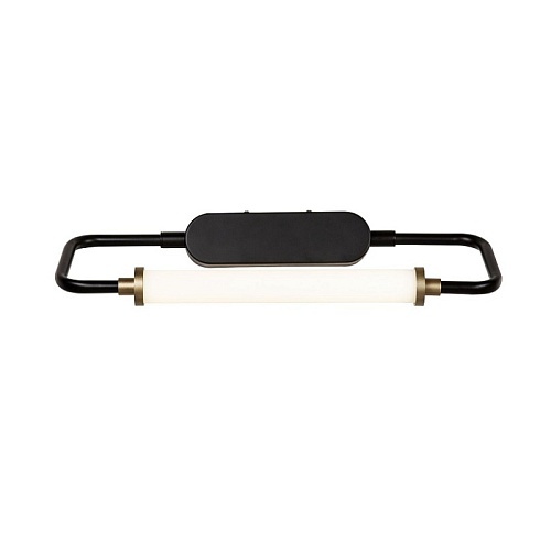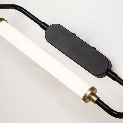 каркас матового черного цвета с золотыми декоративными элементами, поворотный плафон, белый акриловый рассеиватель