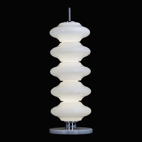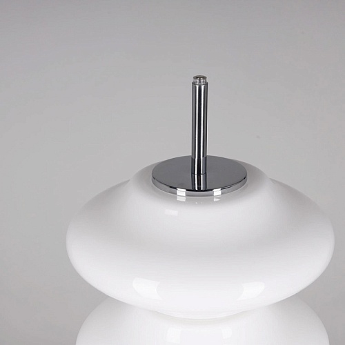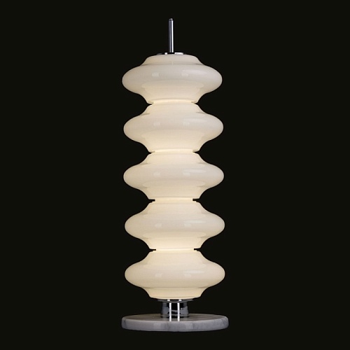 Металлическое основание настольной лампы гальванизировано в цвет хрома. В основании настольной лампы используется натуральный мрамор. Оригинальный плафон выполнен из выдувного стекла, окрашенного в массе в белый цвет.
