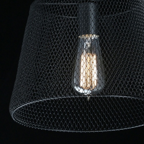 Металлическое основание и плафон в виде сетки окрашены по технологии электрофореза в черный матовый цвет.