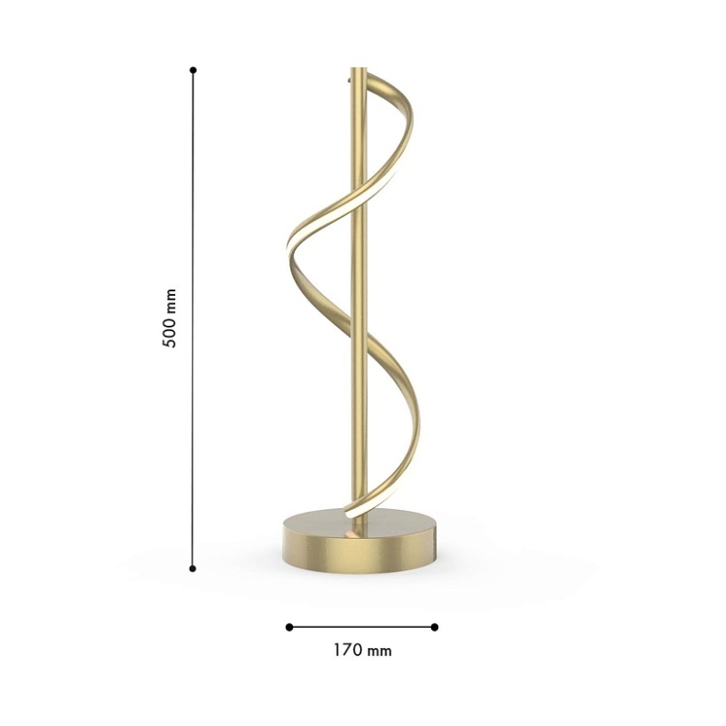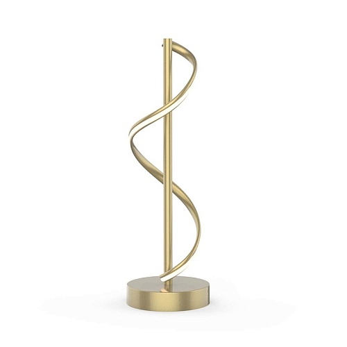 Каркас из металла матового золотого цвета, рассеиватель из белого, непрозрачного акрила, прикрепленный к декоративному элементу в виде волны, встроенная LED-лента, выключатель на проводе.