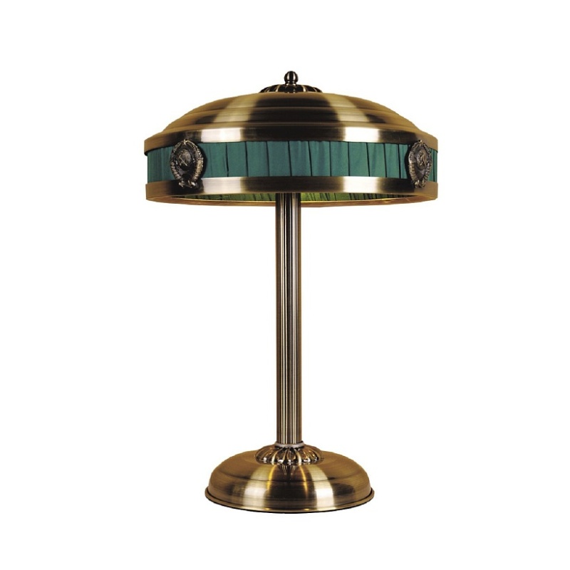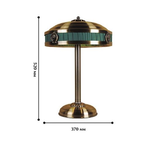 Металлический каркас в цвете античная бронза, абажур декорирован зеленой тканью.