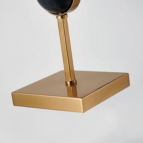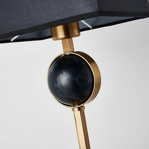 Металлический каркас в цвете античная латунь, плафон из черной ткани, декор - имитация черного мрамора.