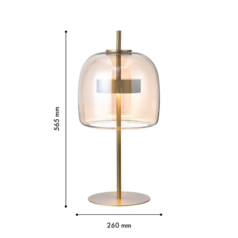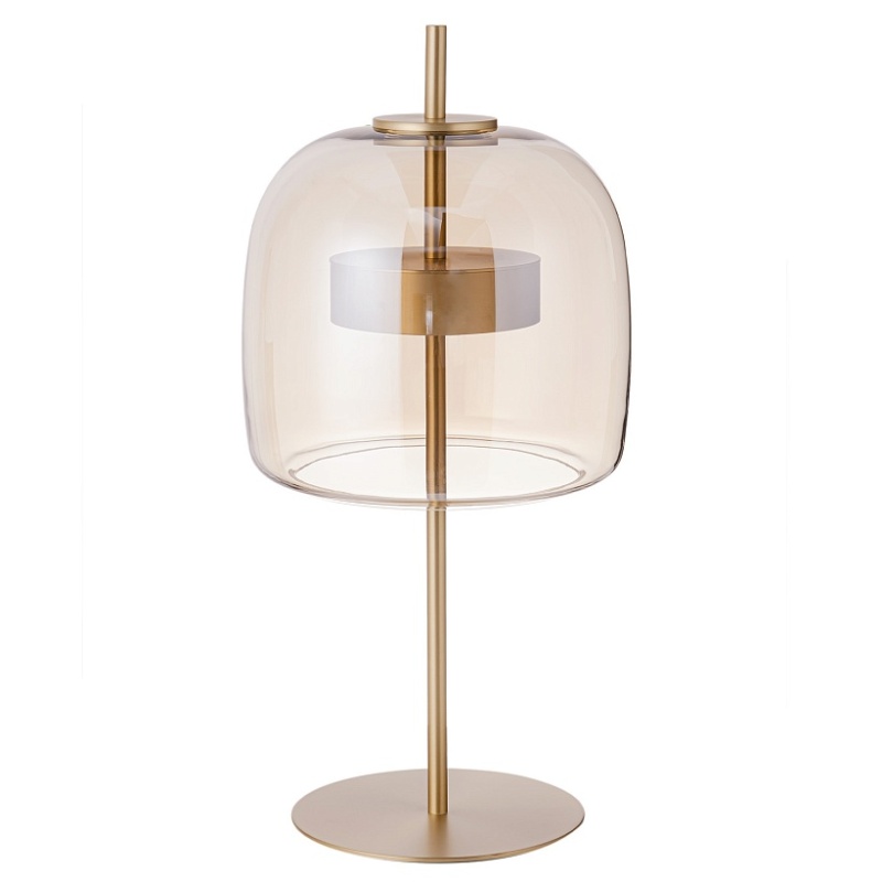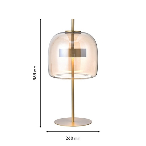 Настольная лампа с каркасом в цвете золото, плафон из янтарного выдувного стекла со встроенным модулем LED.