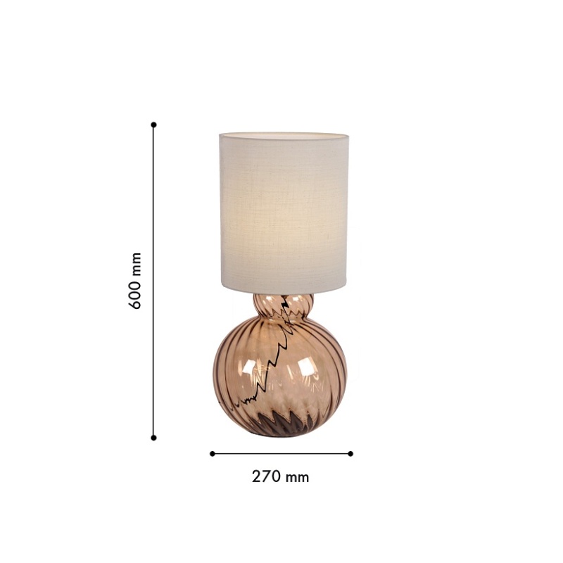 Настольная лампа с основанием из выдувного дымчатого фактурного стекла и тканевым абажуром в сером цвете, цоколь Е14, регулируемая высота.