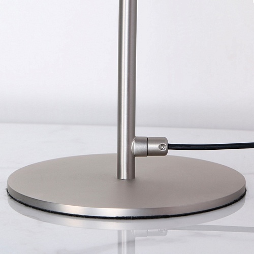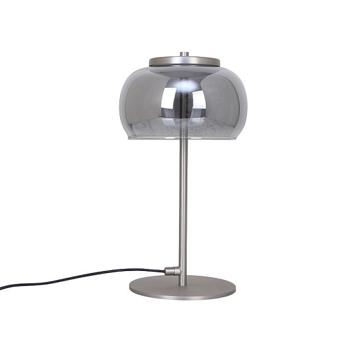 Настольная лампа в цвете никель, с плафоном из выдувного стекла дымчато-серого цвета, встроенный модуль LED.