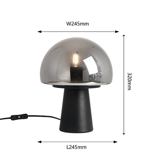 Настольная лампа в черном цвете с дымчато-серым плафоном и цоколем E27.