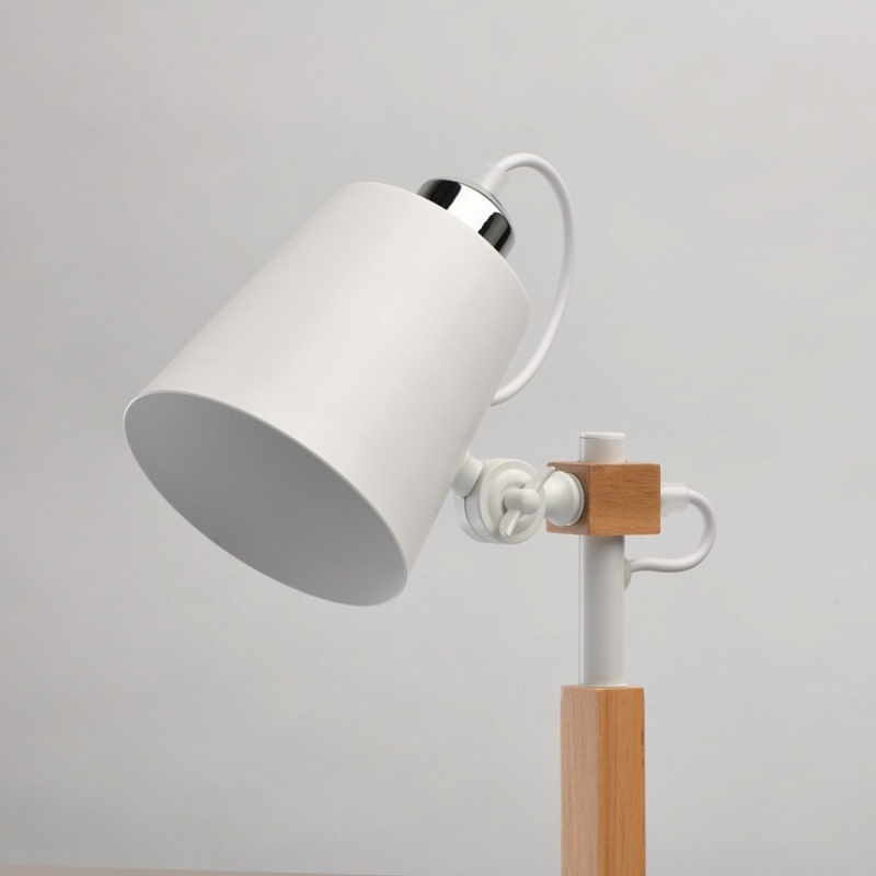 Основание и плафон настольной лампы выполнено из металла и окрашены в белый цвет.Основание, плафон: обработка на токарном станке.Декоративный элемент на центральном стержне: дерево гевея.Декор: красный текстильный шнур.Плафон снабжен поворотным механизмом.
