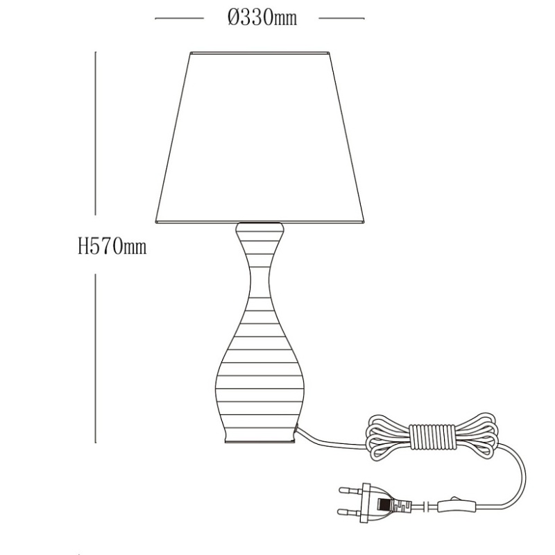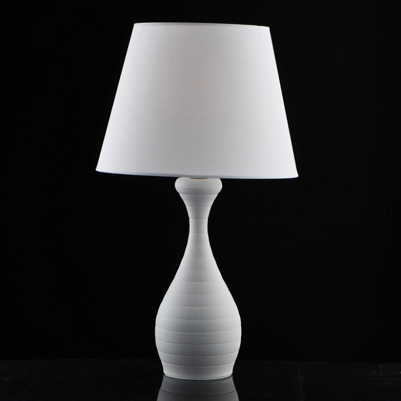 Основание настольной лампы выполнено из металла и окрашено в белый цвет. Светильник декорирован текстильным плафоном белого цвета с термостойким акрилом внутри. Плафон прошит.