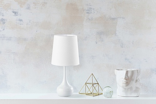 Основание настольной лампы выполнено из металла и окрашено в белый цвет. Светильник декорирован текстильным плафоном белого цвета с термостойким акрилом внутри. Плафон прошит.