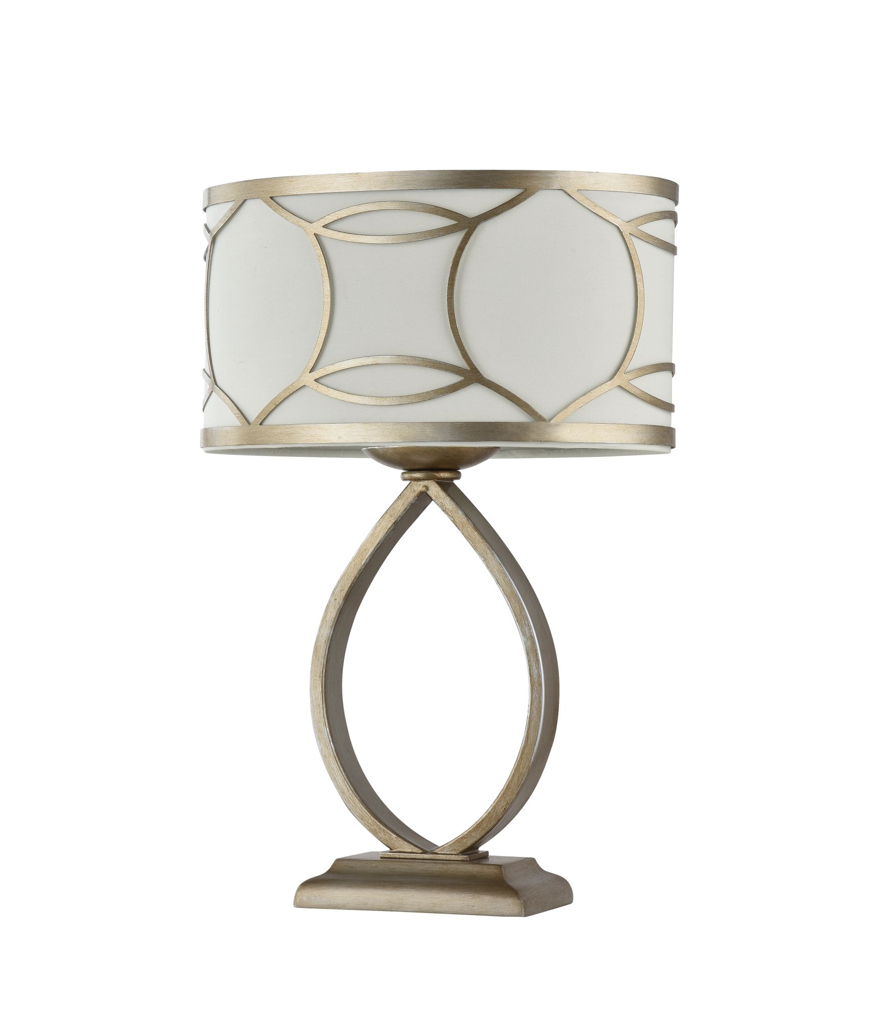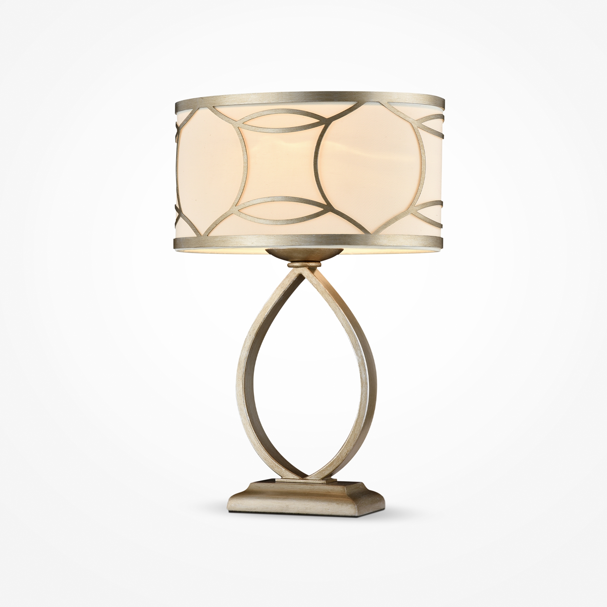Арматура из металла в золотом цвете. Кремовый абажур из хлопка на ПВХ. Декор абажура – металлический каркас с просечным орнаментом. Источник света - лампа с цоколем Е27.