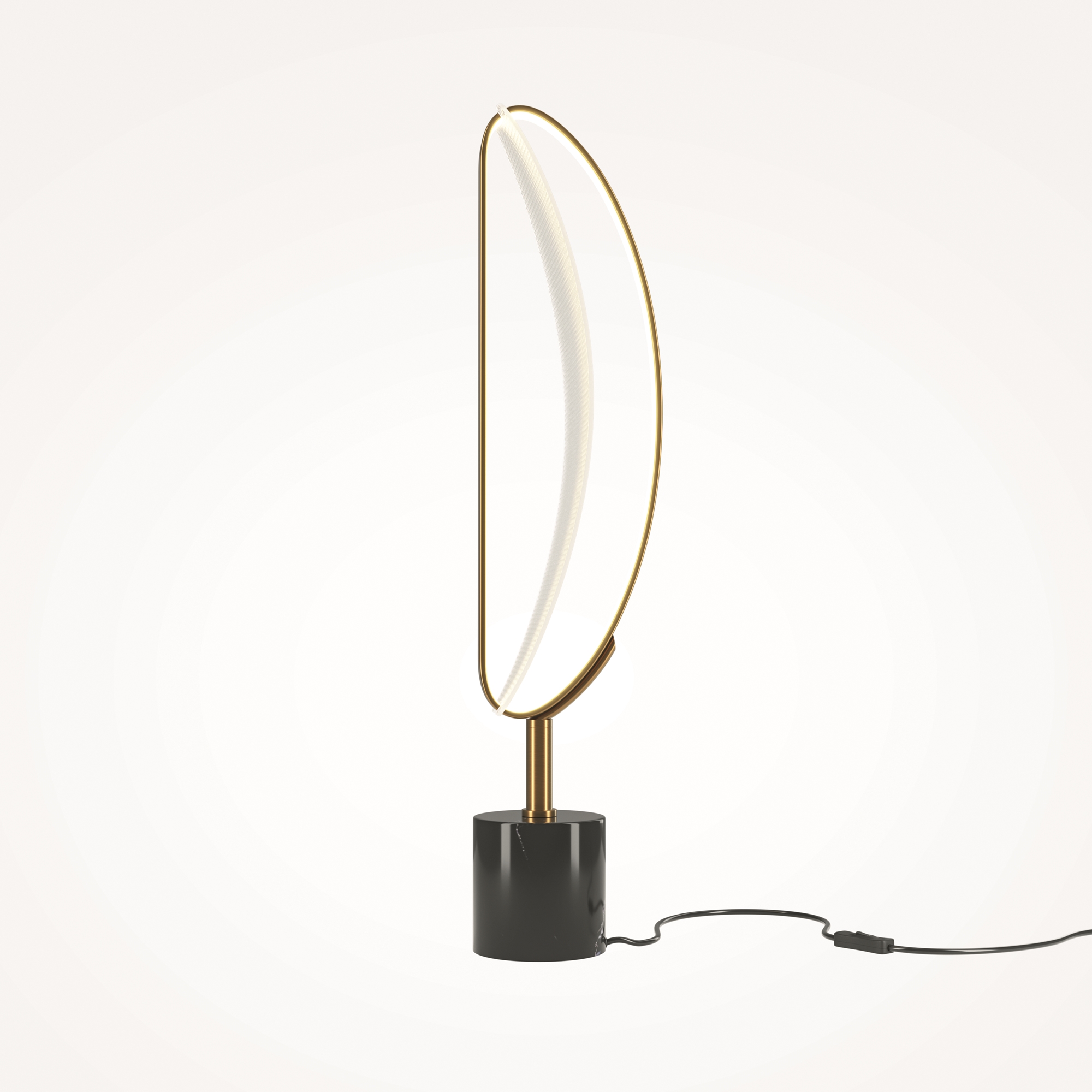 Материал арматуры - металл, цвет - латунь. Декоративные элементы из прозрачного фактурного акрила. LED источник света с цветовой температурой 3000К. Подвесные светильники — регулируемый провод длиной 3 метра. Настольная и напольная модель с функцией диммирования.